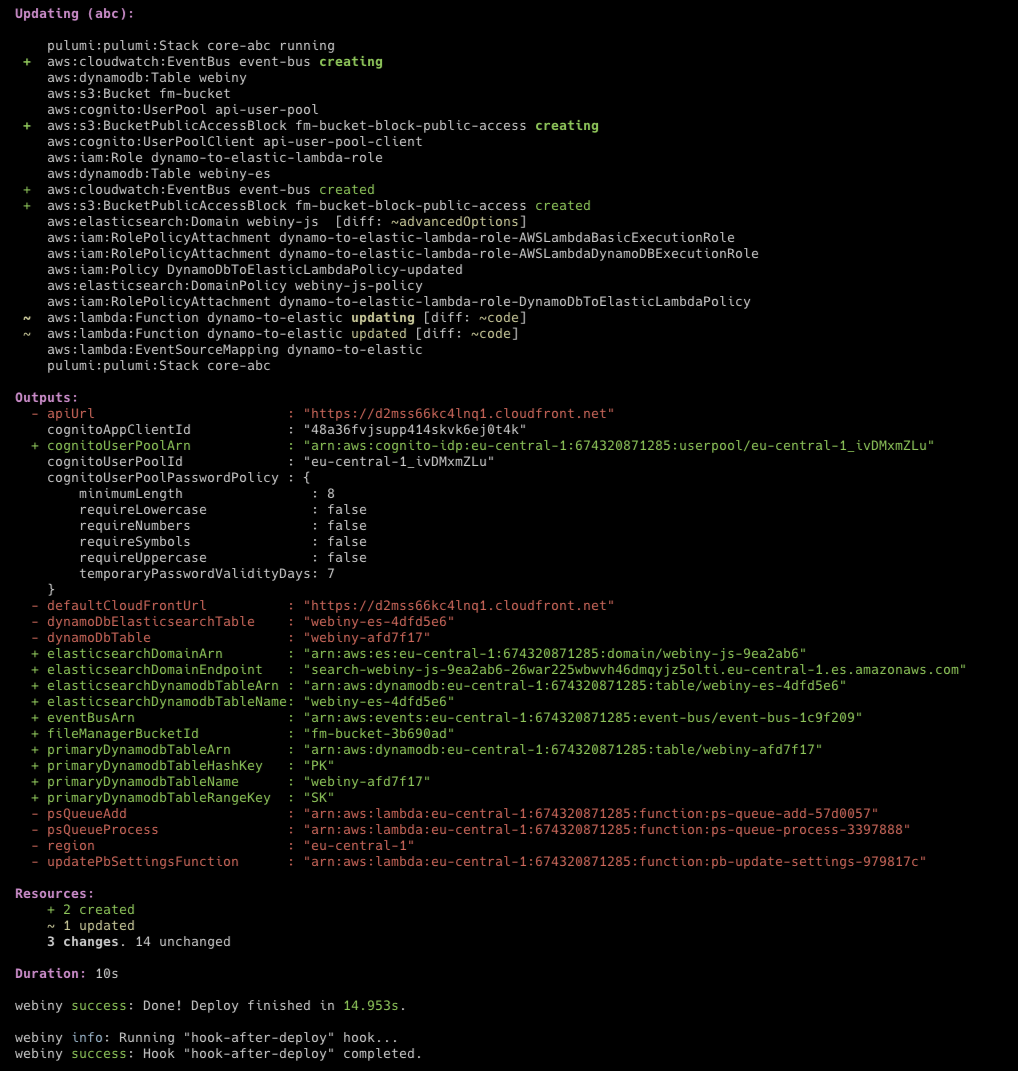 The create operations are related to new Amazon EventBridge that is now deployed with the new Webiny setup, and also the “block-public-access” policy for File Manager’s Amazon S3 bucket (ensures bucket objects are not public).